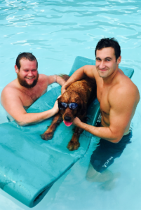 My husband Clay and I, hosted an end-of-season soccer party for our son Adam’s 12-year-old soccer team. We had a pool party and invited the team, parents and siblings. It was a great day celebrating and the kids had fun playing in the pool and eating hotdogs. After everyone left, I started cleaning up the food on the back porch. Occasionally I would check in and look over to the pool to watch my eight-year-old son Colton swim. He was having fun swimming, playing pool basketball and jumping alone in the pool. After a while, I noticed him swimming in the shallow end, over to something black that was floating in the pool. Colton being a typical and curious little kid, gently swam up to the floating black thing for further examination. He cupped his hands and brought it to his face. He smelled the floating black thing and started gagging and gasping for air. He sounded like he was drowning so I ran down to the pool to make sure that he was ok. Colton had held and smelled a long turd. Apparently, one of the kids had doodied in the pool. Yes, I admit that.