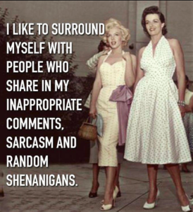 Soon the wedding party arrived and we began drinking red wine and eating hors d’oeuvres. Later and sitting near us, I noticed my husband’s Aunt Norma, who was the mother of the groom. Aunt Norma is an elegant, gracious and refined lady of distinguished taste and character. She is also very intimidating and scares the ever living shit out of me. For some reason, when I am around her, I stutter and flounder with my vocabulary. Sandra told me to be sure and at some point, during the conversation to compliment her outfit. She explained that Aunt Norma had a clothing designer from New York City design a special outfit for the evening. The white linen fabric had been specifically flown in from Italy and she had several fittings and visits to New York in order to get the perfect style and fit. I had just enough wine to feel confidant to talk to her, therefore, I sashayed over with my red wine glass in hand to where she was sitting in the chair. Aunt Norma always gracefully kisses both of your cheeks therefore, I was going to kiss her cheeks first. I also wanted to tell her how beautiful she looked in her outfit and how lovely the wedding had been. Once there, I clumsily leaned in and accidentally spilled a few drops of red wine on her lovely white designer outfit. With eyes wide in fear, my hands began to shake. My body was in flight mode. If only I could run away. OMG! I tried to wipe the red wine off of her swanky outfit with my napkin but instead, I spilled more wine on her. And then, a lot more wine on her. Oh, the horror. If only you could have seen her face. Therefore, I quickly and shamefully walked back to my assigned seating spot and sat down beside Sandra and Hal. They had witnessed this fiasco and were laughing so hard that they had tears in their eyes. For the remainder of the night, I stayed very far away from Aunt Norma. Sometimes, I think she still harbors anger towards me for ruining her outfit on such a special occasion and night. In any case, years later, Sandra told me that if she or Hal sometimes are feeling a little sad or depressed, they think of the time when I ruined her Aunt Norma’s elegant designer outfit. She said that this particular memory wipes away the blues and makes them laugh and quickly feel better. Bitches. Yes, I admit that.